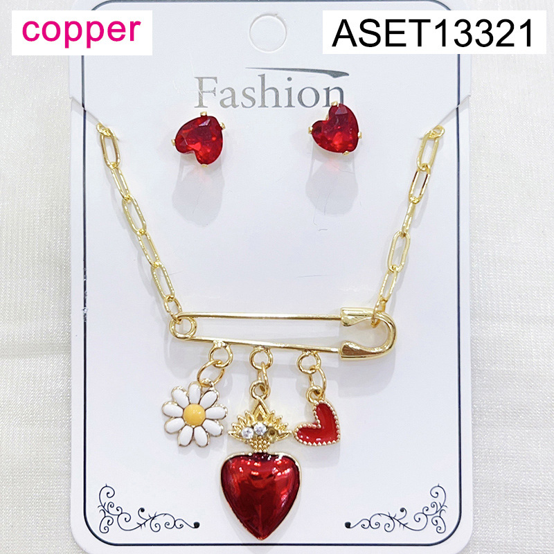 Home > Fashion Jewelry > Level B Fashion Jewelry New Trendy Women Jewelry Pin Flower Heart Golden Mother's Day SET;Material:copper (cobre)