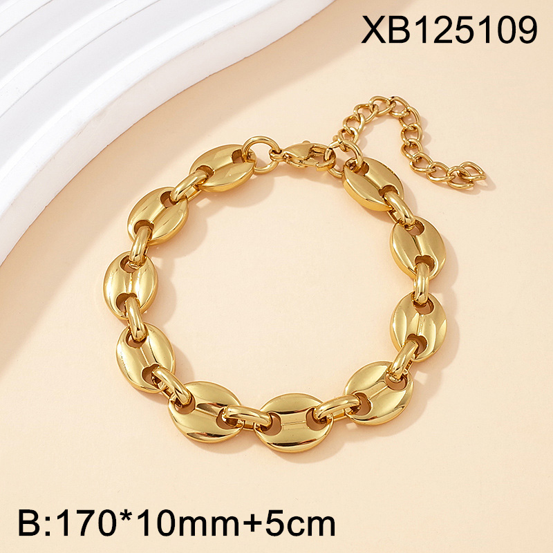 Level C Stainless Steel New Trendy Women Jewelry Pig nose Oval Golden Thick Chain Bracelet