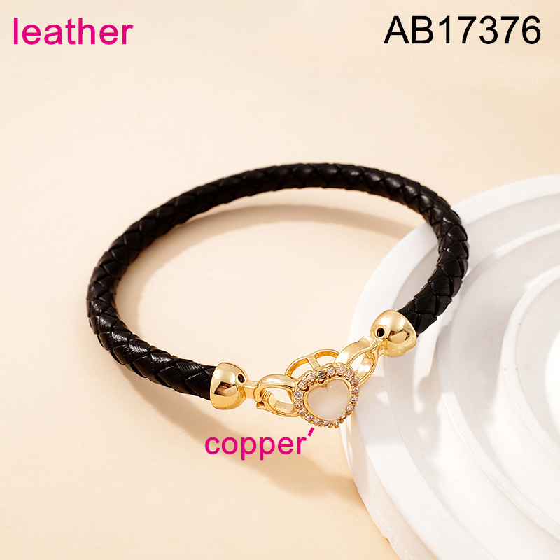 Level B Fashion Jewelry New Trendy Women Jewelry Heart Golden Leather Bracelet;Material:copper (cobre)