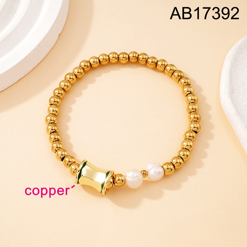 Level B Fashion Jewelry New Trendy Women Jewelry Pearl Style/Plastic Beads Slender waist Golden Elastic Bracelet;Material:copper (cobre)