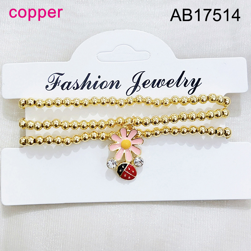 Home > Fashion Jewelry > Fashion Jewelry Bracelet > Level B Fashion Jewelry New Trendy Women Jewelry Niche Design Layered Jewelry Round Beads Flower Animal Beetle Golden Elastic Bracelet;Material:copper (cobre)