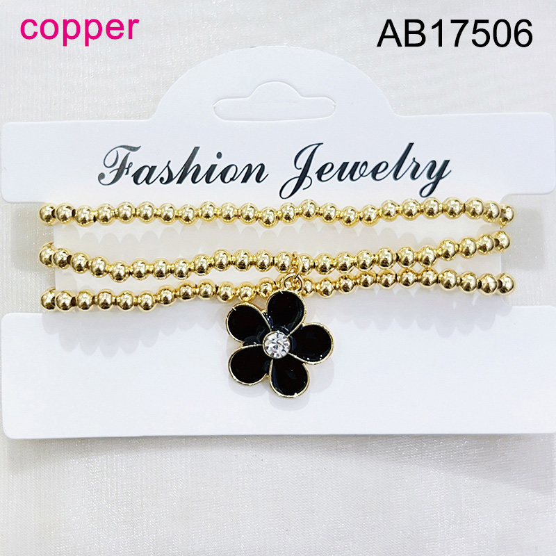 Home > Fashion Jewelry > Fashion Jewelry Bracelet > Level B Fashion Jewelry New Trendy Women Jewelry Niche Design Layered Jewelry Round Beads Flower Golden Elastic Bracelet;Material:copper (cobre)