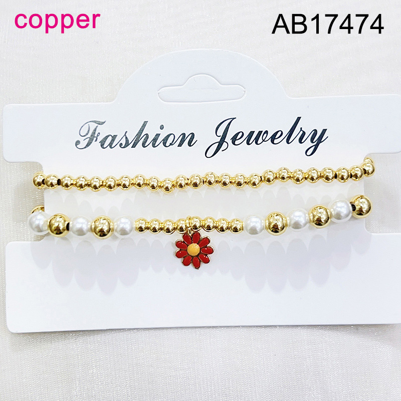 Level B Fashion Jewelry New Trendy Women Jewelry Niche Design Layered Jewelry Pearl Style/Plastic Beads Round Beads Flower Golden Elastic Bracelet;Material:copper (cobre)