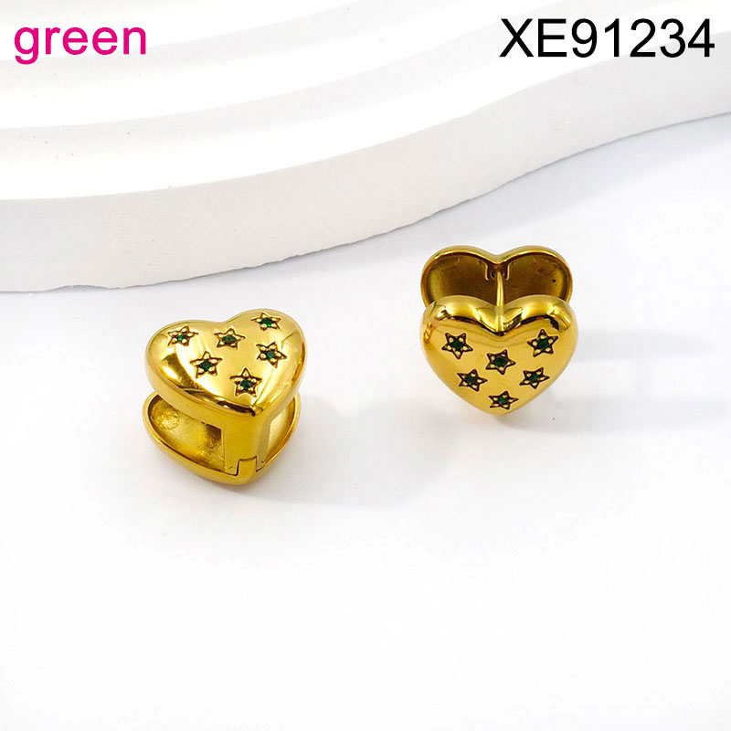 Home > Stainless Steel Earrings > Stainless Steel Women Jewelry New Trendy Heart Green Star Golden Earring