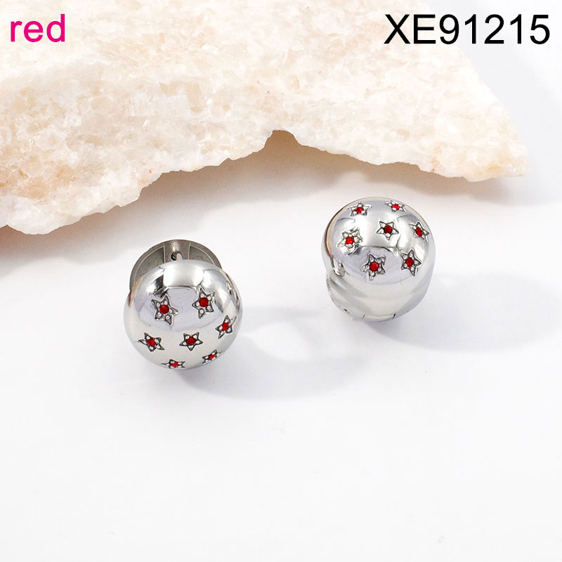 Stainless Steel Women Jewelry New Trendy Round Red Star Steel color Earring
