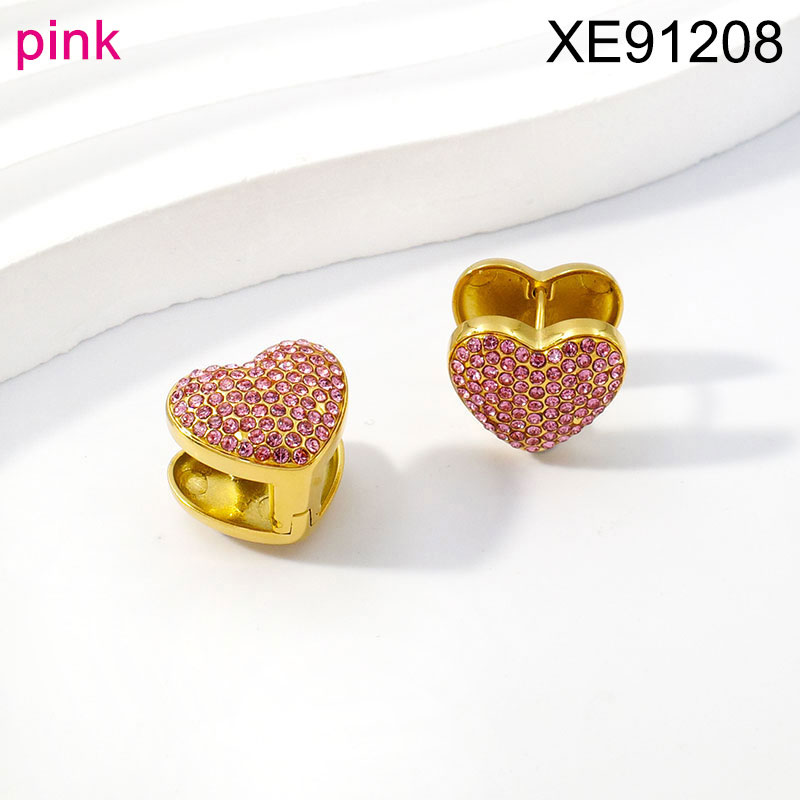 Stainless Steel Women Jewelry New Trendy Heart Pink Diamond Golden Earring