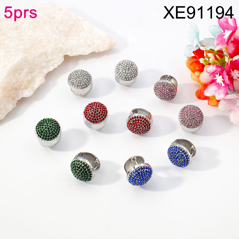 Stainless Steel Women Jewelry New Trendy Round Diamond Steel color Earring