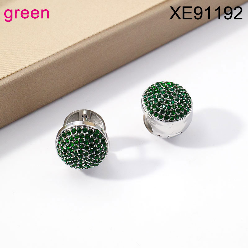 Stainless Steel Women Jewelry New Trendy Round Green Diamond Steel color Earring