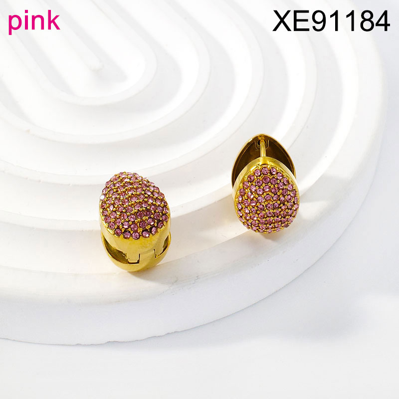 Stainless Steel Women Jewelry New Trendy Water Drip Pink Diamond Golden Earring