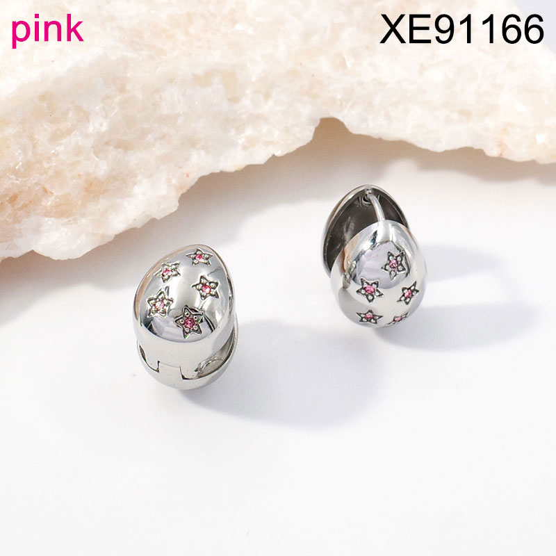 Stainless Steel Women Jewelry New Trendy Water Drip Pink Star Steel color Earring