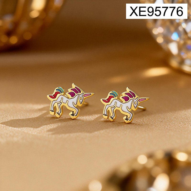 Home > Stainless Steel Earrings > Level B Stainless Steel New Trendy Women Jewelry Drip Oil/Enamel Unicorn Golden Earrings