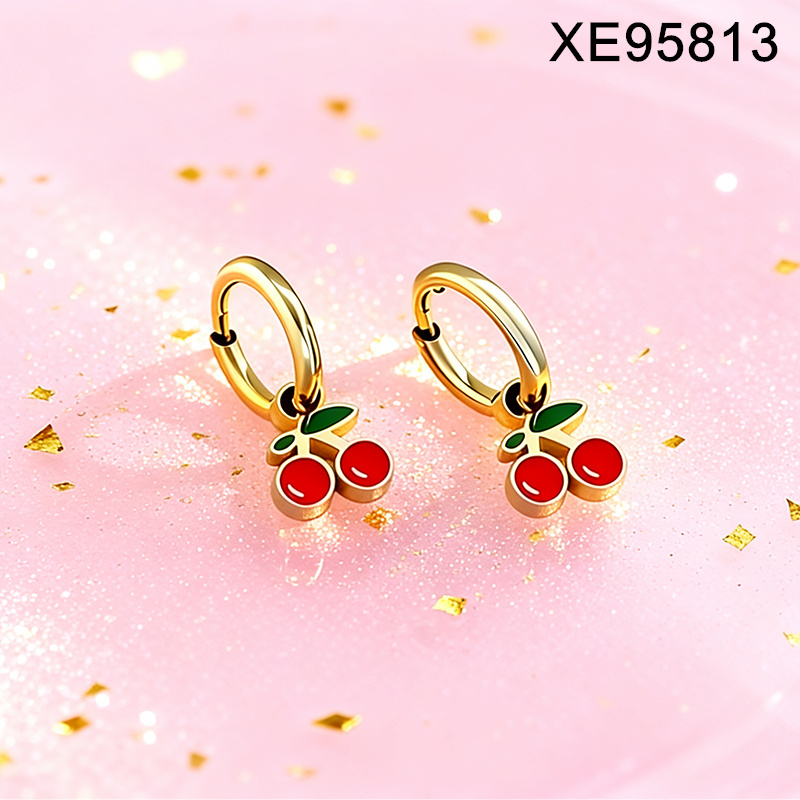 Home > Stainless Steel Earrings > Level B Stainless Steel New Trendy Women Jewelry Summer fruit style Cherry Golden Hoop Earrings