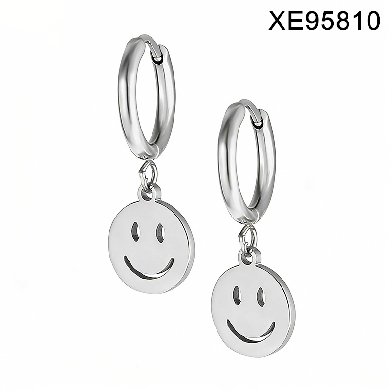 Home > Stainless Steel Earrings > Level B Stainless Steel New Trendy Women Jewelry Smiling face Steel color Hoop Earrings