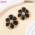 Level B Stainless Steel New Trendy Women Jewelry Drip Oil/Enamel Black Flower Golden Earrings