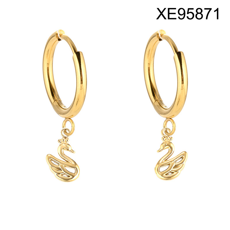 Home > Stainless Steel Earrings > Level B Stainless Steel New Trendy Women Jewelry Animal Swan Golden Hoop Earrings