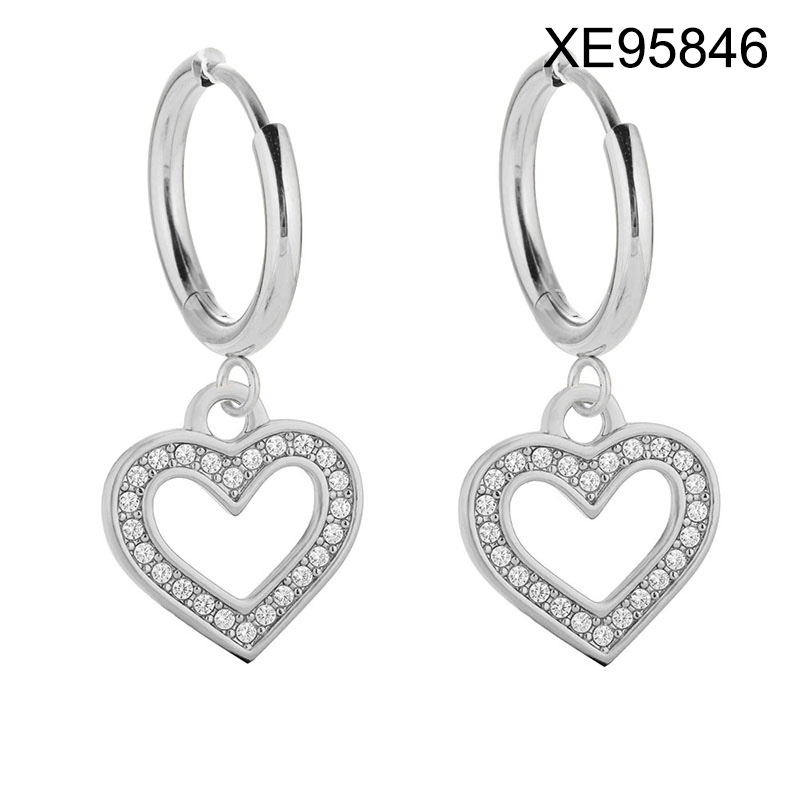 Level B Stainless Steel New Trendy Women Jewelry Heart Steel color Mother's Day Hoop Earrings