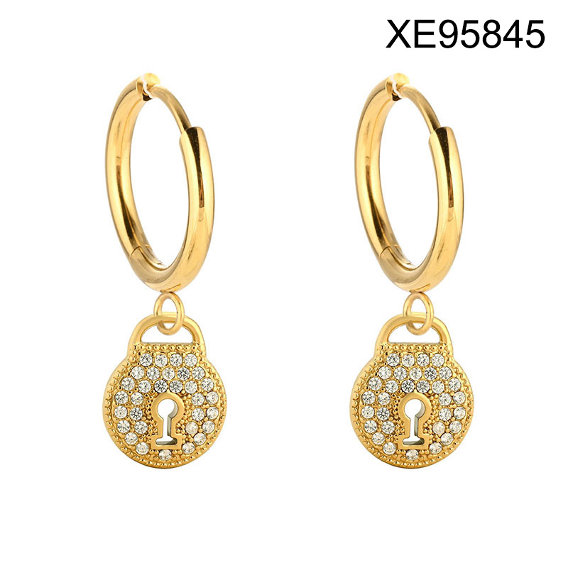 Home > Stainless Steel Earrings > Level B Stainless Steel New Trendy Women Jewelry Lock Golden Valentine's Day Hoop Earrings