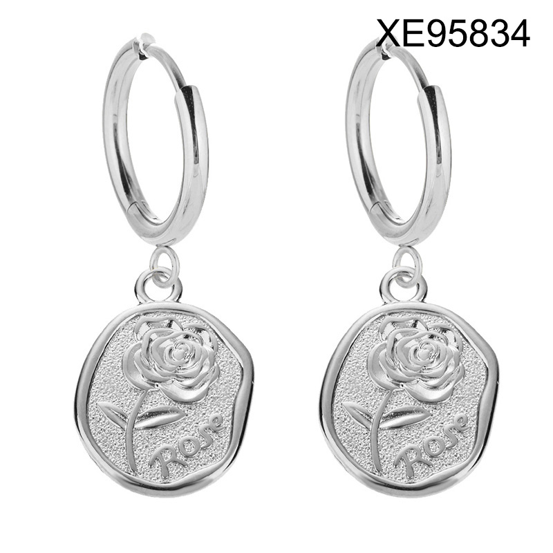 Home > Stainless Steel Earrings > Level B Stainless Steel New Trendy Women Jewelry Flower Steel color Hoop Earrings