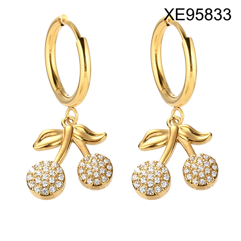 Home > Stainless Steel Earrings > Level B Stainless Steel New Trendy Women Jewelry Summer fruit style Cherry Golden Hoop Earrings