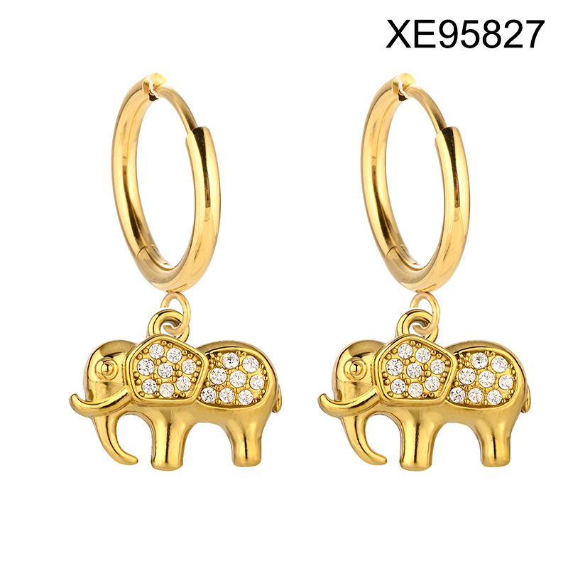 Home > Stainless Steel Earrings > Level B Stainless Steel New Trendy Women Jewelry Animal Elephant Golden Hoop Earrings