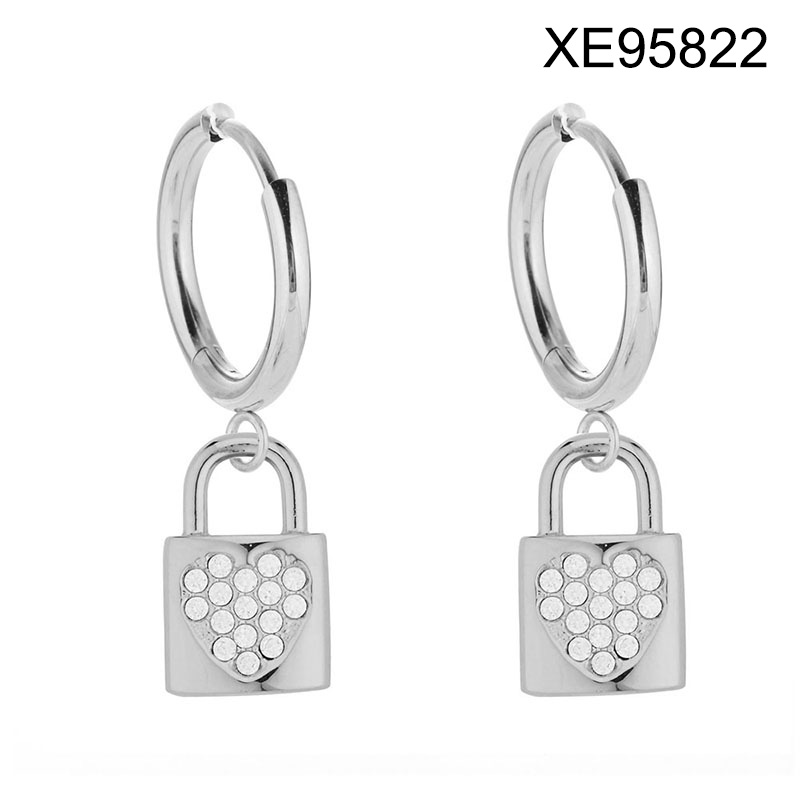 Level B Stainless Steel New Trendy Women Jewelry Lock Heart Steel color Valentine's Day Hoop Earrings