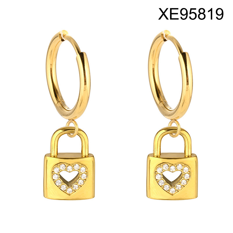 Home > Stainless Steel Earrings > Level B Stainless Steel New Trendy Women Jewelry Lock Heart Golden Valentine's Day Hoop Earrings