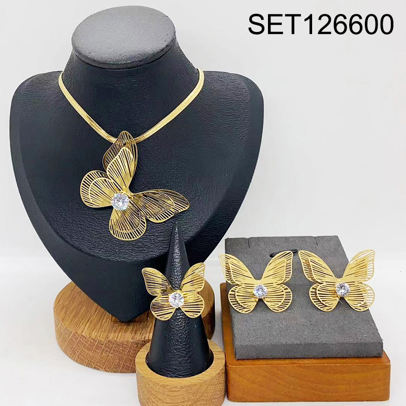 Level B Stainless Steel New Trendy Women Jewelry Animal Butterfly Golden 3pcs SET