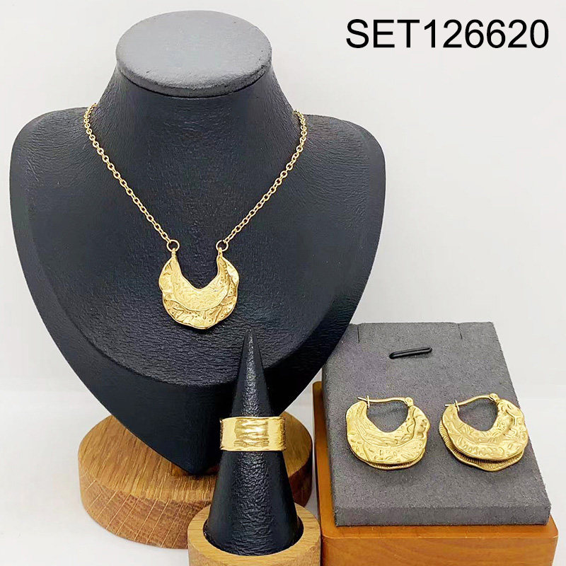 Home > Stainless Steel Sets > 3pcs Sets > Level B Stainless Steel New Trendy Women Jewelry Golden 3pcs SET