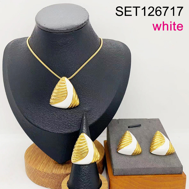 Level B Stainless Steel New Trendy Women Jewelry Drip Oil/Enamel White Triangle Golden 3pcs SET