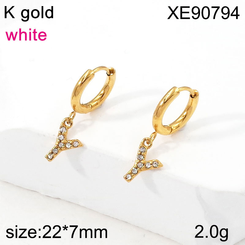 Home > Letter Jewelry > Level B Stainless Steel Jewelry New Trendy Sticky Stone Letter Y Golden Hoop Earring