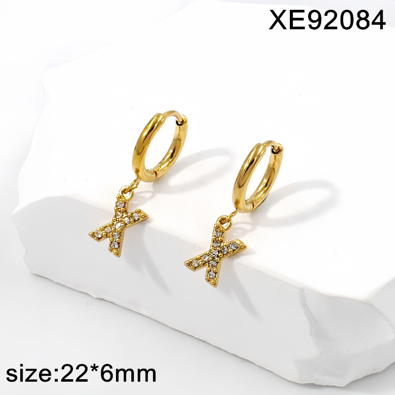 Home > Letter Jewelry > Level B Stainless Steel Jewelry New Trendy Sticky Stone Letter X Golden Hoop Earrings