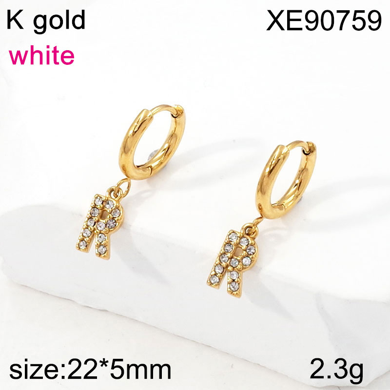 Home > Letter Jewelry > Level B Stainless Steel Jewelry New Trendy Sticky Stone Letter R Golden Hoop Earring