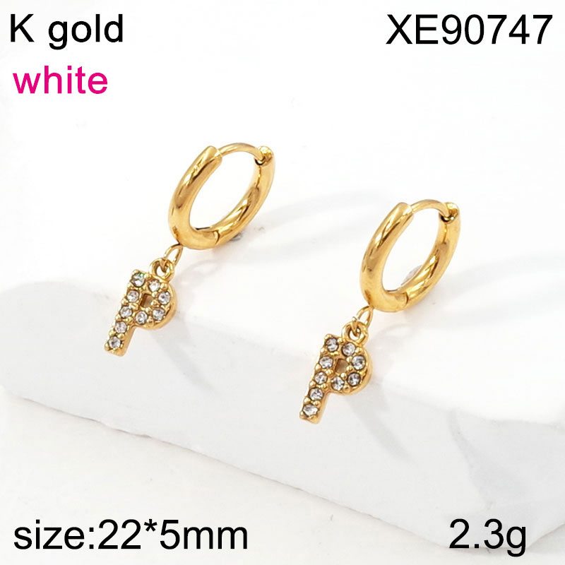 Home > Letter Jewelry > Level B Stainless Steel Jewelry New Trendy Sticky Stone Letter P Golden Hoop Earring