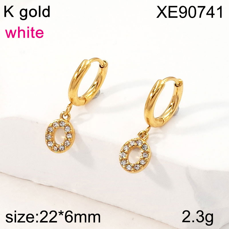 Home > Letter Jewelry > Level B Stainless Steel Jewelry New Trendy Sticky Stone Letter O Golden Hoop Earring