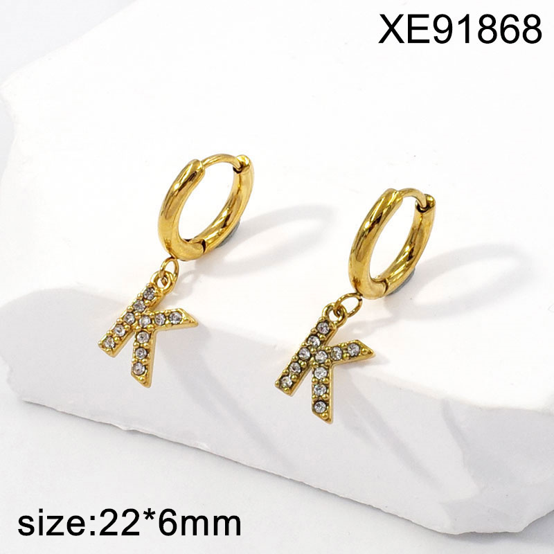 Home > Letter Jewelry > Level B Stainless Steel Jewelry New Trendy Sticky Stone Letter K Golden Hoop Earrings