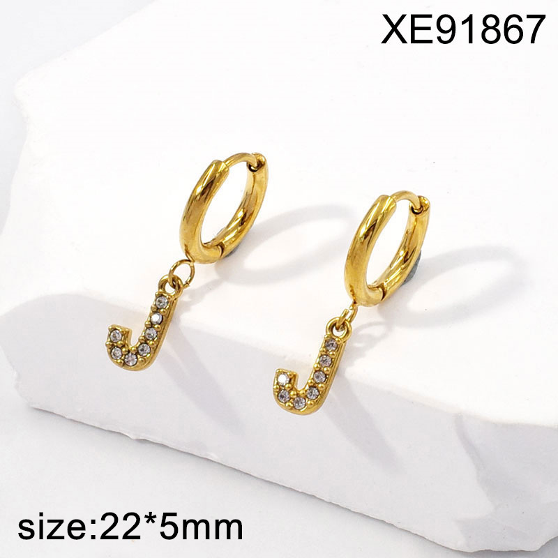 Home > Letter Jewelry > Level B Stainless Steel Jewelry New Trendy Sticky Stone Letter J Golden Hoop Earrings