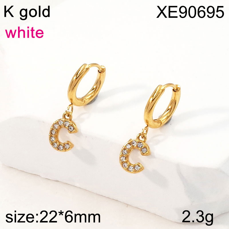 Level B Stainless Steel Jewelry New Trendy Sticky Stone Letter C Golden Hoop Earring