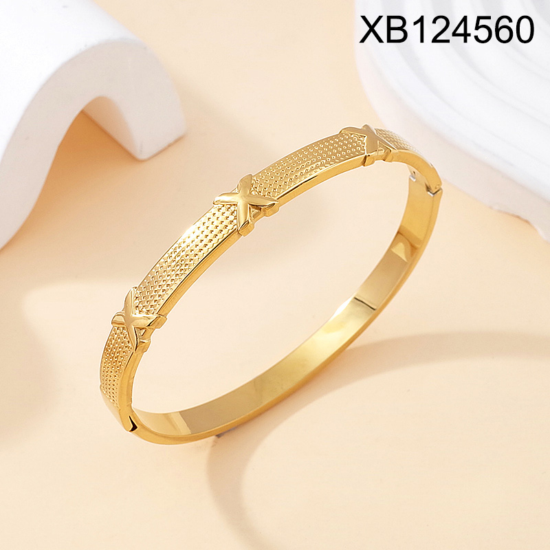 Level B Stainless Steel New Trendy Women Jewelry Letter X Golden Bangle