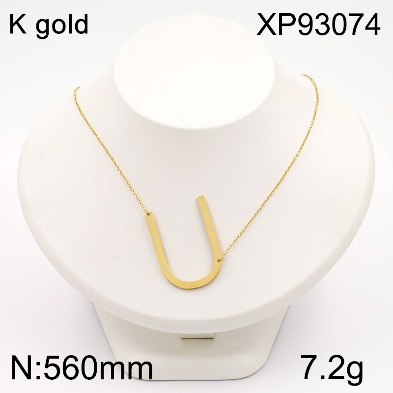 Home > Letter Jewelry > Steel Letter Pandants > Stainless Steel Jewelry New Trendy Golden Letter U Pendant