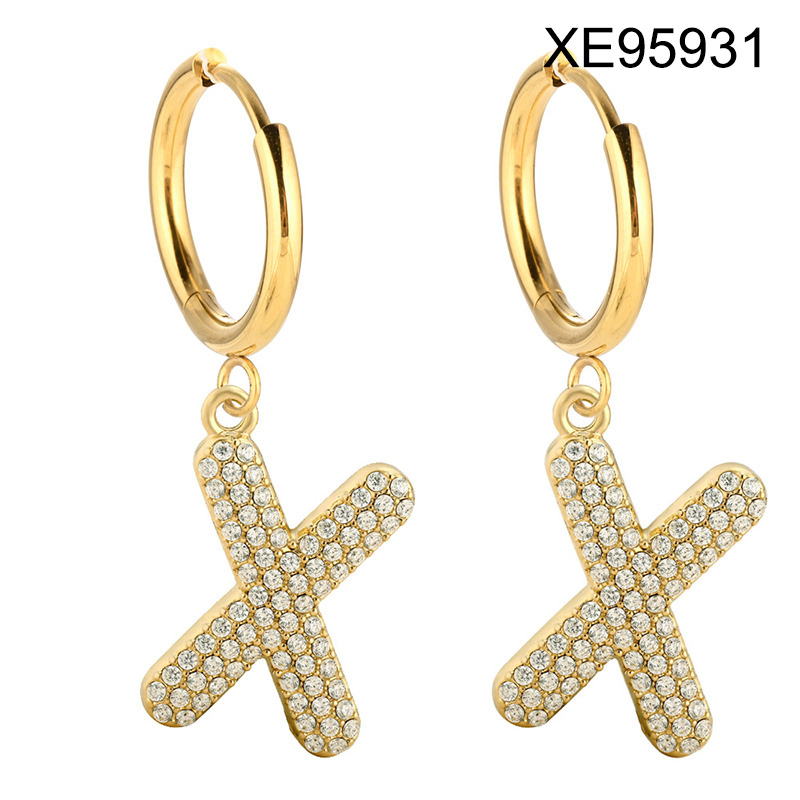 Level B Stainless Steel New Trendy Women Jewelry Letter X Golden Hoop Earrings