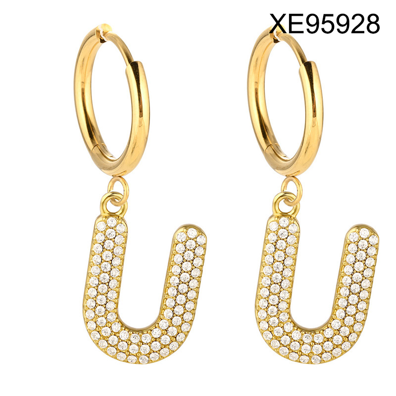 Home > Letter Jewelry > Steel Letter Earrings > Level B Stainless Steel New Trendy Women Jewelry Letter U Golden Hoop Earrings