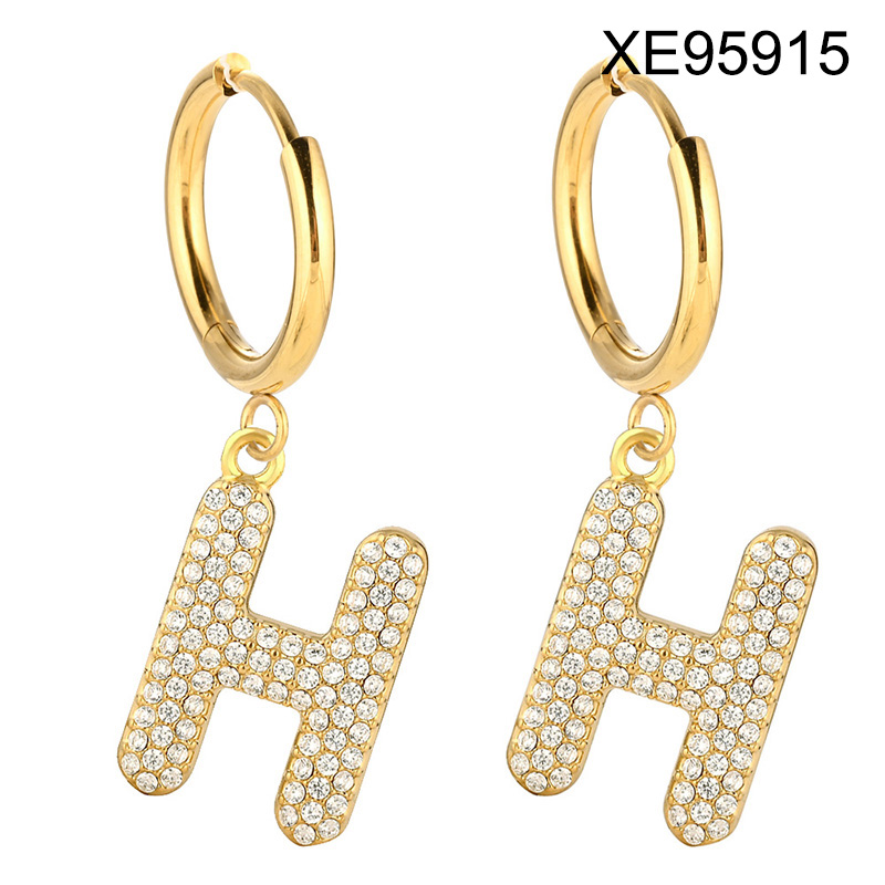 Home > Letter Jewelry > Steel Letter Earrings > Level B Stainless Steel New Trendy Women Jewelry Letter H Golden Hoop Earrings
