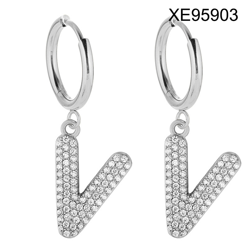 Home > Letter Jewelry > Steel Letter Earrings > Level B Stainless Steel New Trendy Women Jewelry Letter V Steel color Hoop Earrings