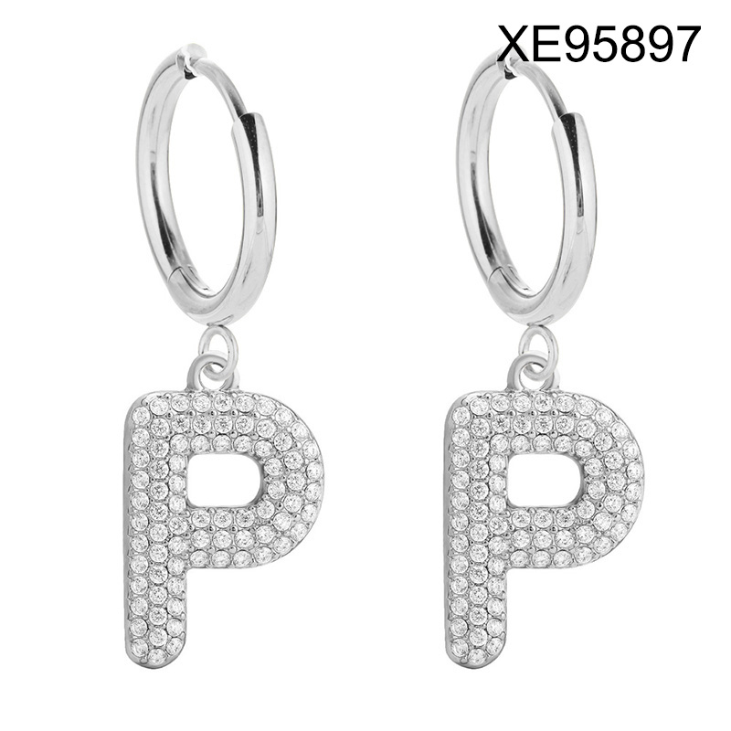 Level B Stainless Steel New Trendy Women Jewelry Letter P Steel color Hoop Earrings