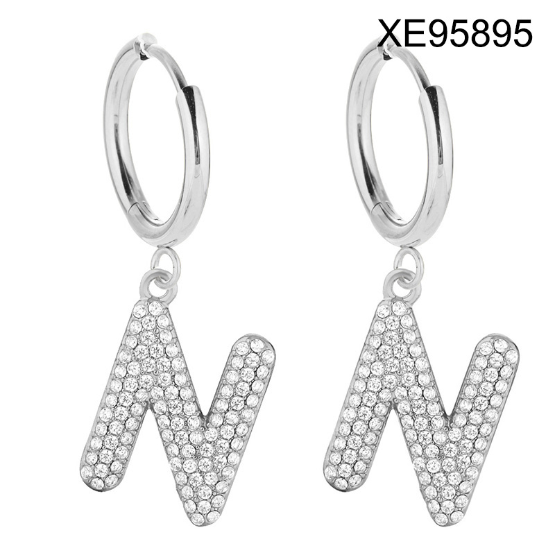 Level B Stainless Steel New Trendy Women Jewelry Letter N Steel color Hoop Earrings