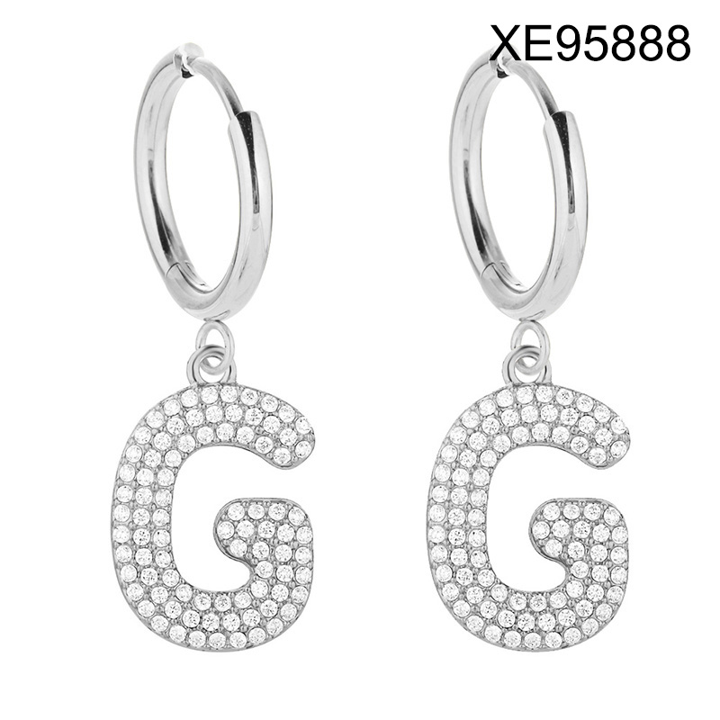 Home > Letter Jewelry > Steel Letter Earrings > Level B Stainless Steel New Trendy Women Jewelry Letter G Steel color Hoop Earrings