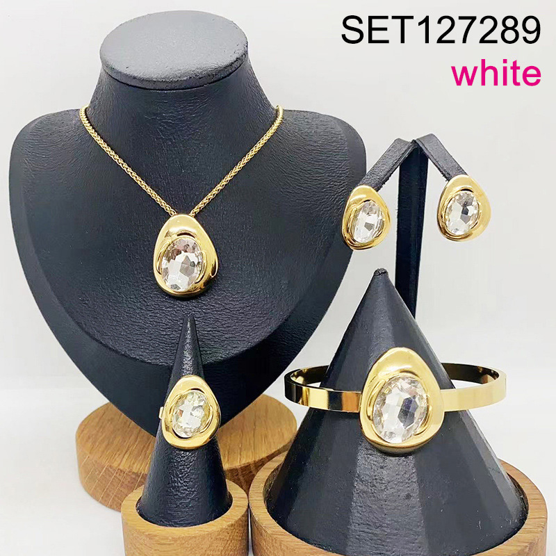 Home > Stainless Steel Sets > Hot Set Jewerly > Level B Stainless Steel New Trendy Women Jewelry White Stone Geometry Golden 4pcs SET