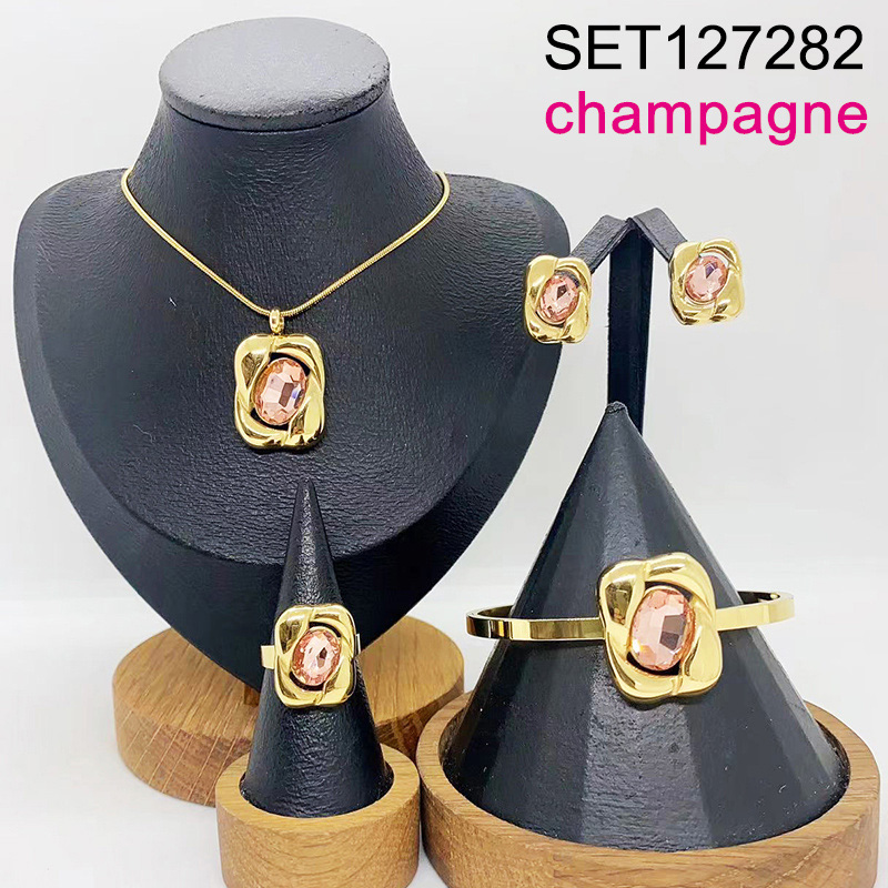 Level B Stainless Steel New Trendy Women Jewelry Champagne Geometry Golden 4pcs SET