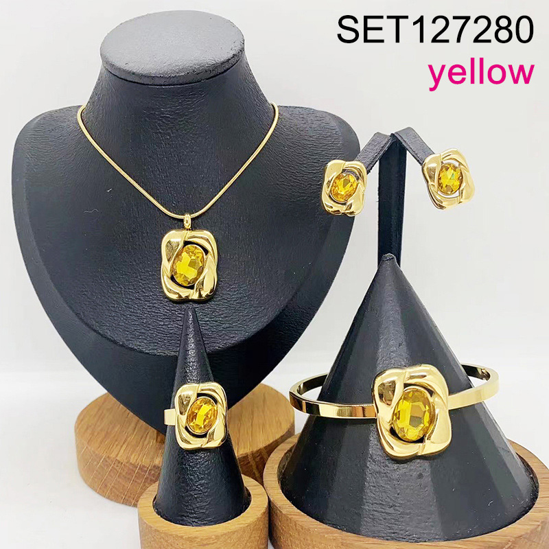 Home > Stainless Steel Sets > Hot Set Jewerly > Level B Stainless Steel New Trendy Women Jewelry Yellow Stone Geometry Golden 4pcs SET