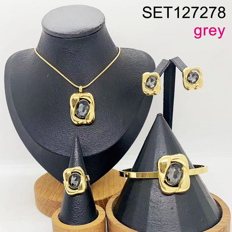 Home > Stainless Steel Sets > Hot Set Jewerly > Level B Stainless Steel New Trendy Women Jewelry Grey Stone Geometry Golden 4pcs SET